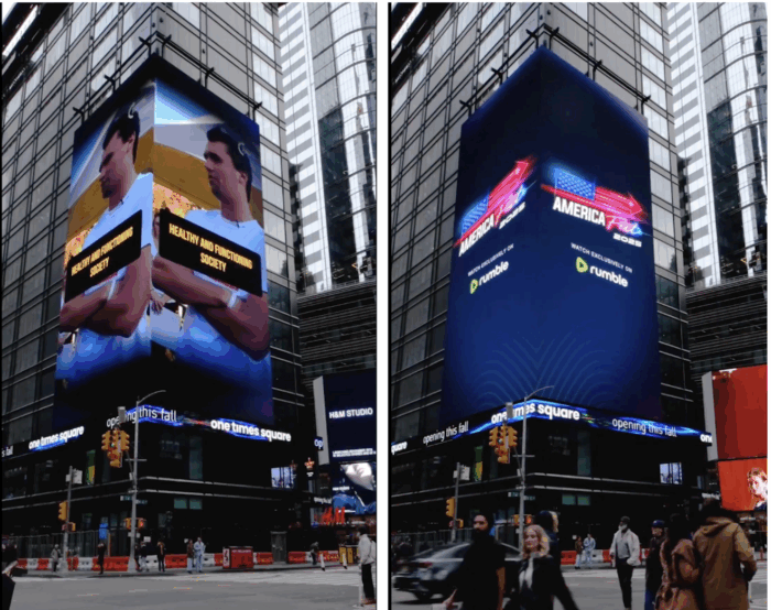 An advertisement for Turning Point USA’s AmericaFest was displayed in New York City’s Times Square Monday ahead of its 2025 conference, which is themed around the legacy of the late founder of TPUSA Charlie Kirk.