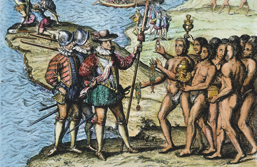 After being rejected by the Portuguese crown, Christopher Columbus eventually went to Queen Isabella of Spain to ask for funding for his voyage to find a new passage to the West Indies. After being originally rejected by King Ferdinand II and Queen Isabella, they eventually agreed to fund his expedition, and in the year 1492, the Italian explorer set sail on one the most important voyages in history, with few navigational tools at his disposal. After sailing for quite some time, he directs his crew towards spotting flickers of light in the distance. He eventually spots land, docked on the island of San Salvador in the Bahamas, and ultimately comes in contact with the native Taíno people.